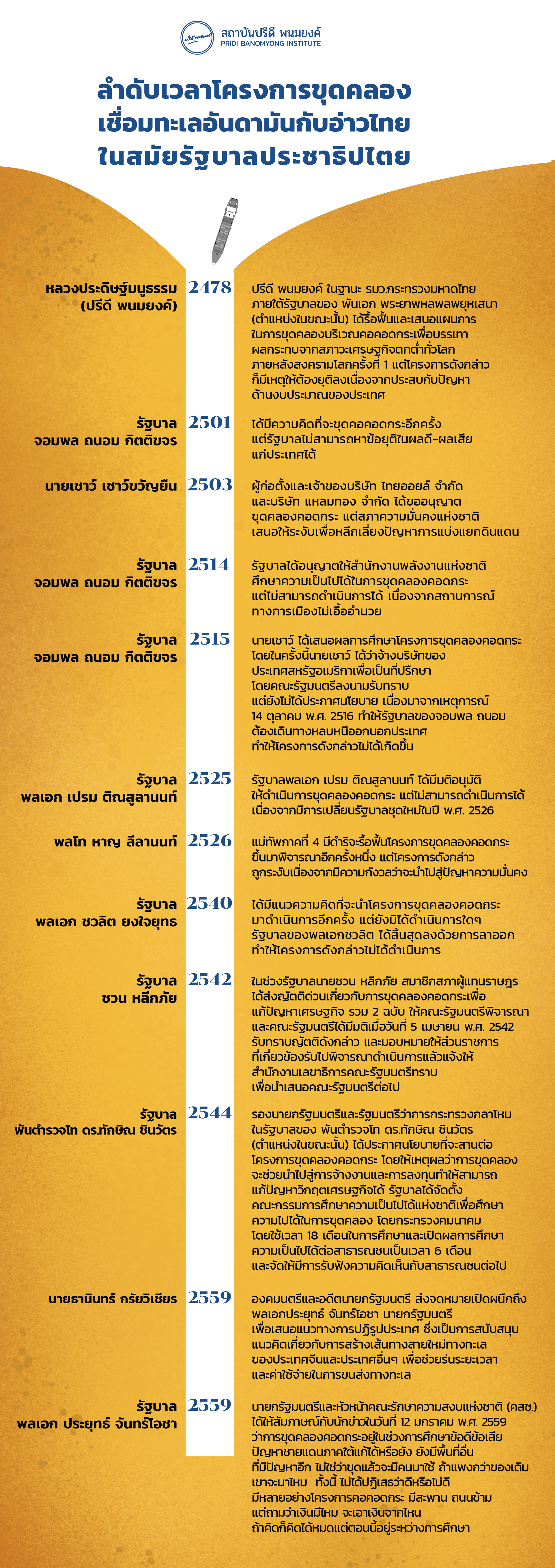 การกลับมาอีกครั้งของโครงการขุดคลองเชื่อมทะเลอันดามันกับอ่าวไทย ตั้งแต่สมัยรัฐบาลหลวงประดิษฐ์มนูธรรม