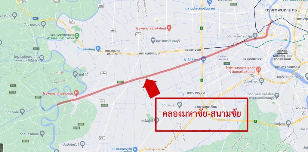 ภาพแสดงเส้นทางคลองมหาชัย-สนามชัย